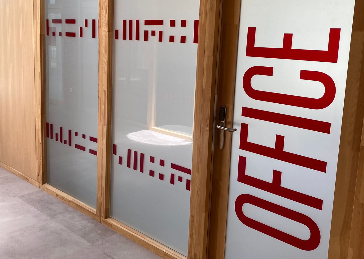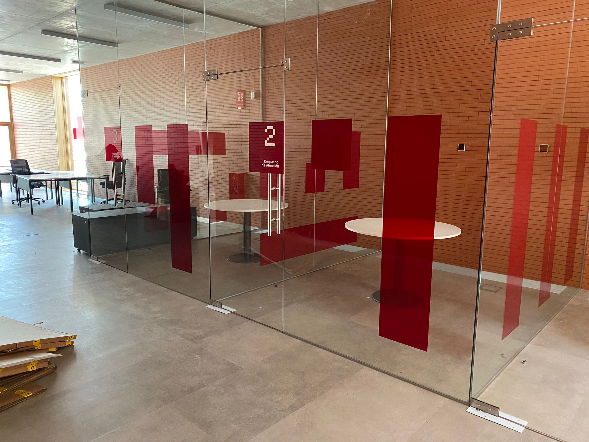 - Rotulación personalizada de salas y despachos: Utilizamos vinilos decorativos en cristaleras para aportar privacidad y transmitir el branding de forma elegante.