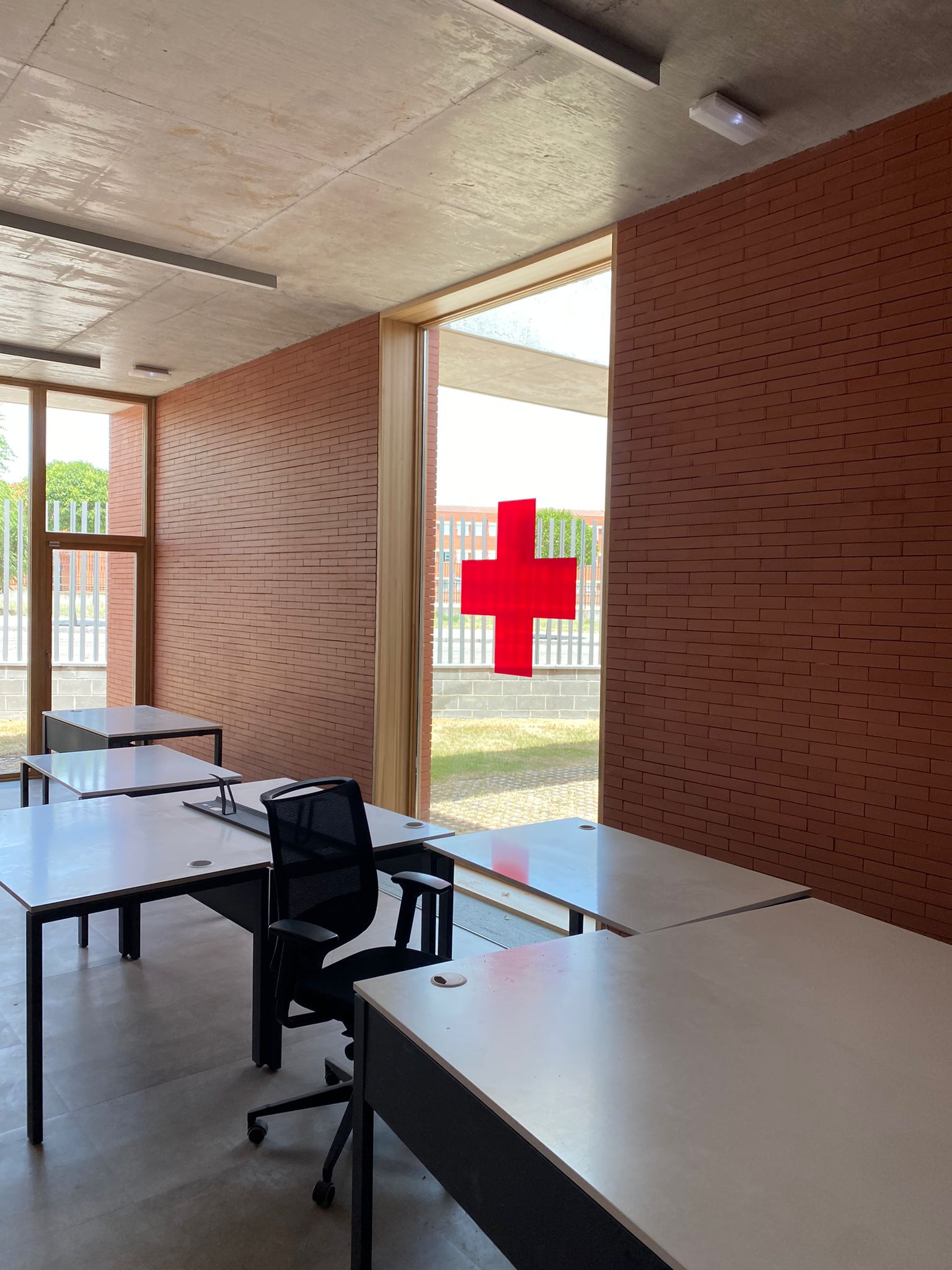 - Diseño en paredes y puertas: Aplicamos vinilos personalizados en paredes y puertas, integrando elementos gráficos relacionados con la identidad de Cruz Roja y creando un ambiente visualmente atractivo.